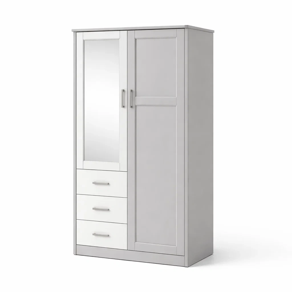 Armoire en bois MDF avec miroir et trois tiroirs grise