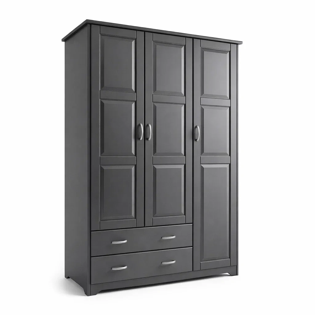 Armoire en bois grise avec 3 portes et 2 tiroirs 180 x 120 x 50 cm