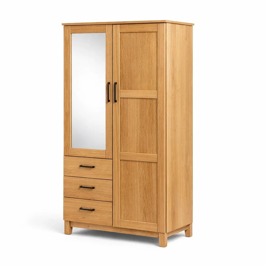 Armoire en chêne avec miroir et tiroirs