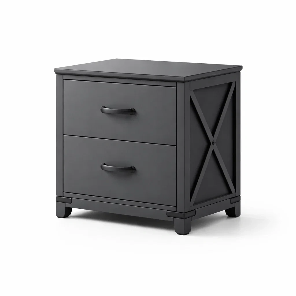 Table de chevet en bois MDF noir avec 2 tiroirs