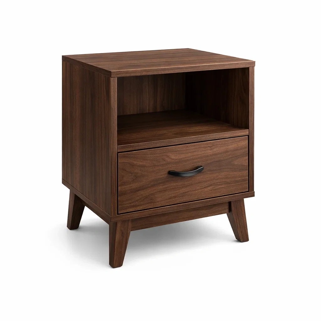 Table de chevet en bois de noyer avec tiroir et niche