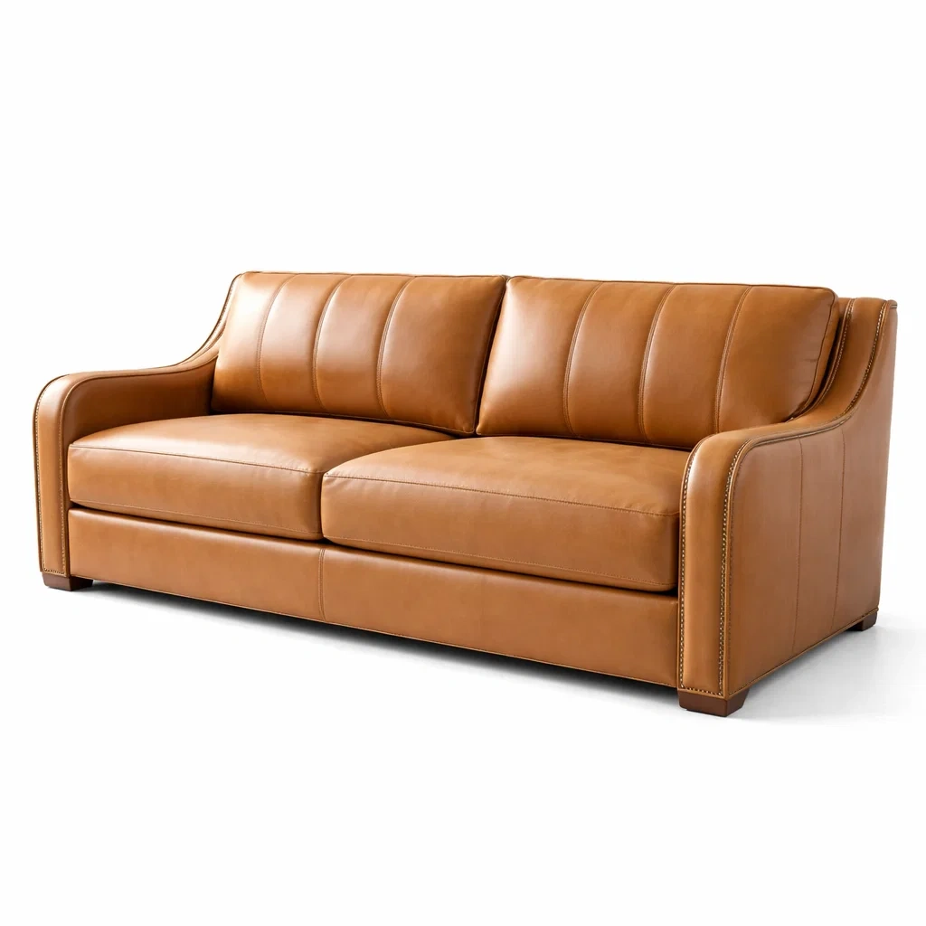 Canapé trois places en cuir véritable brun