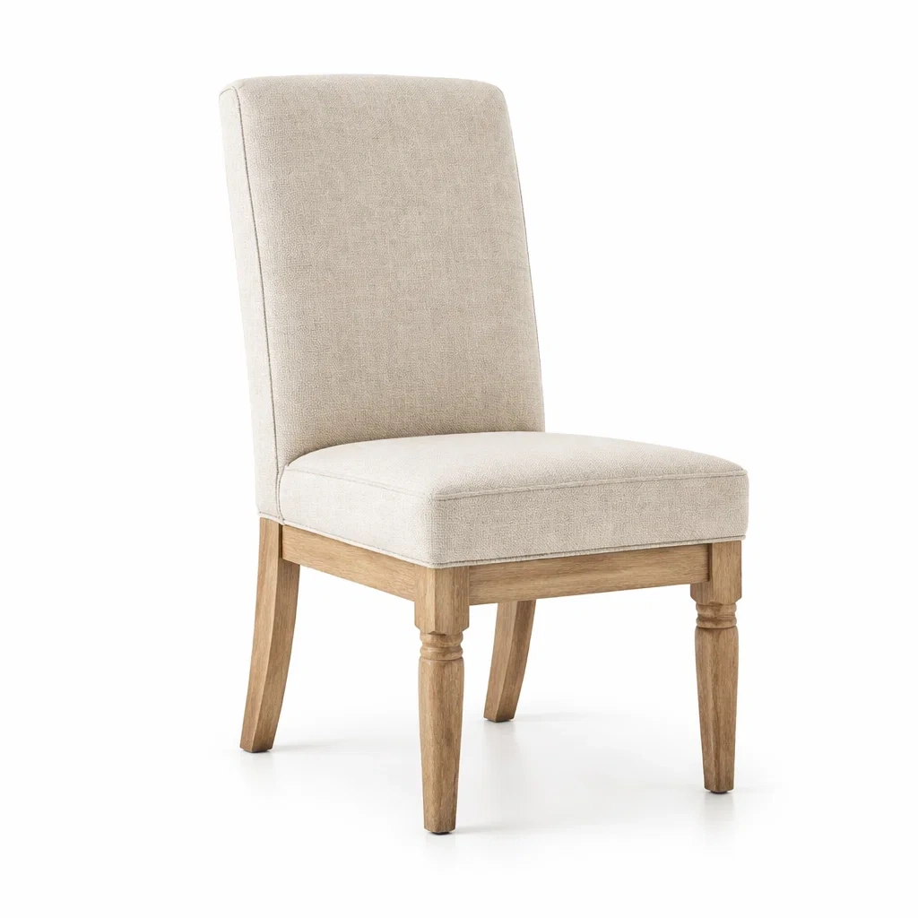 Chaise de salle à manger en bois avec revêtement en polyester beige