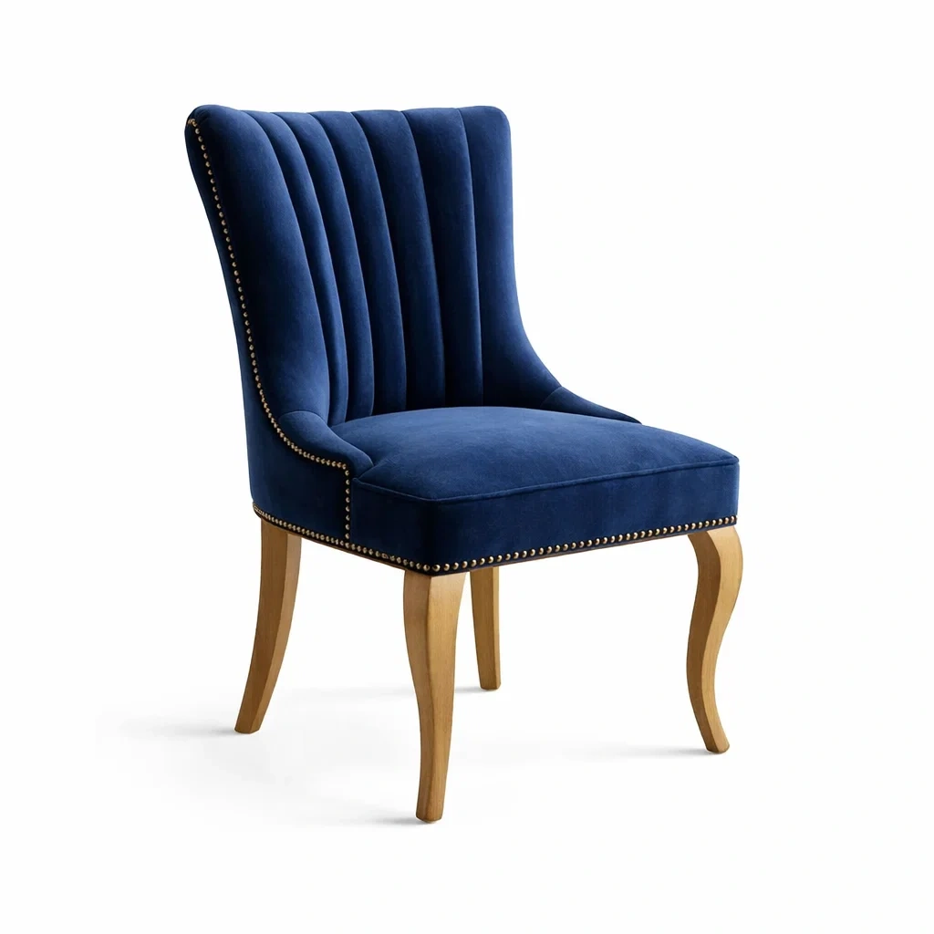 Chaise de salle à manger en velours bleu avec pieds en bois