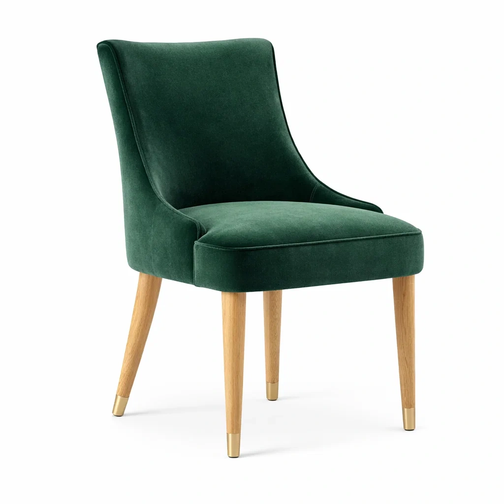 Chaise de salle à manger en velours vert avec pieds en chêne