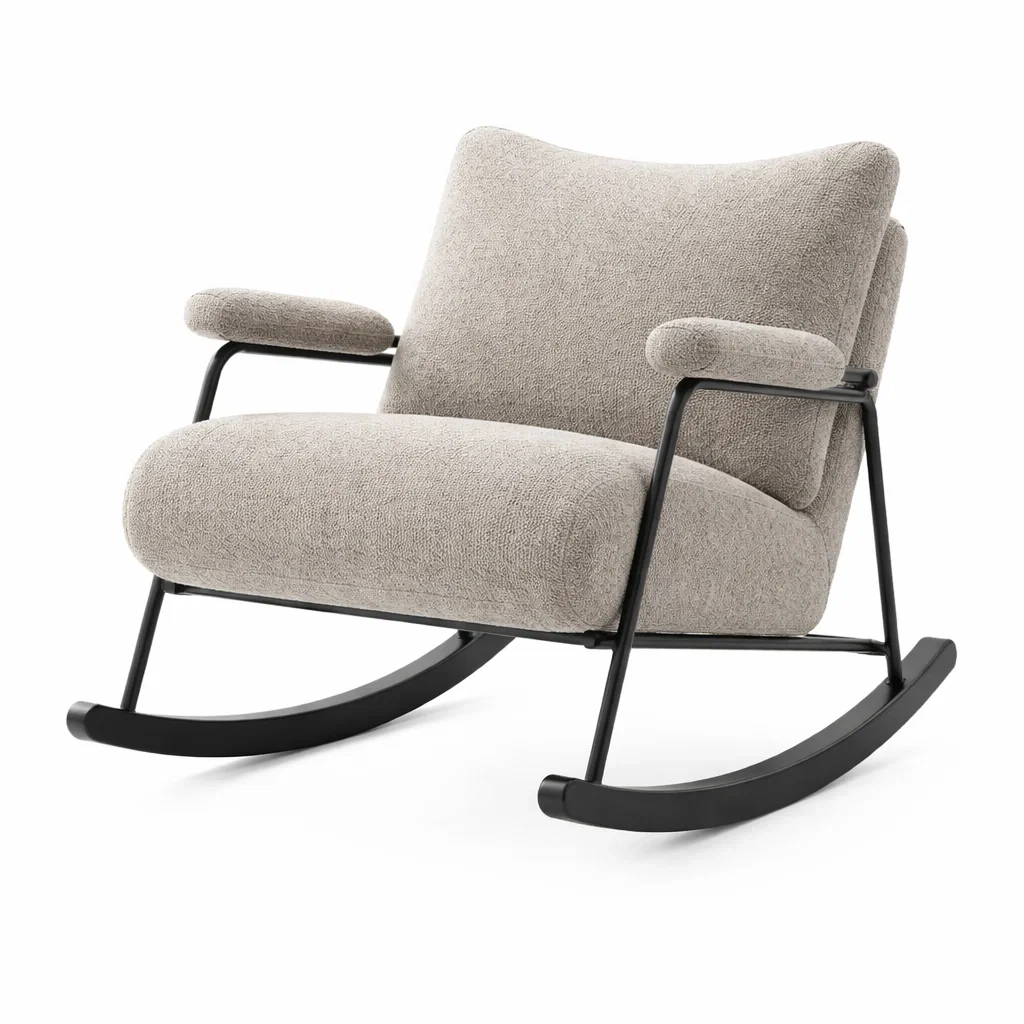 Fauteuil à bascule en tissu polyester beige avec cadre en métal