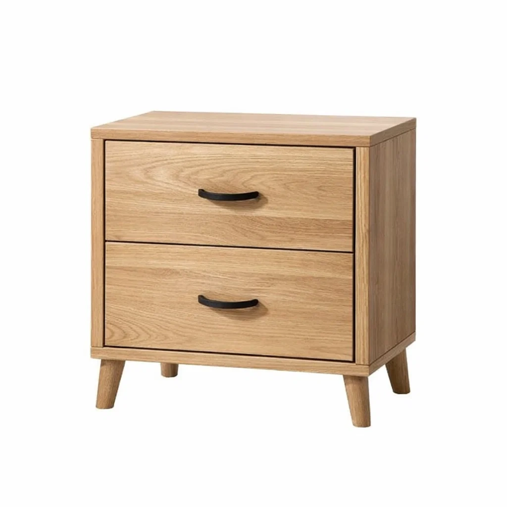 Table de chevet en bois de chêne clair avec deux tiroirs