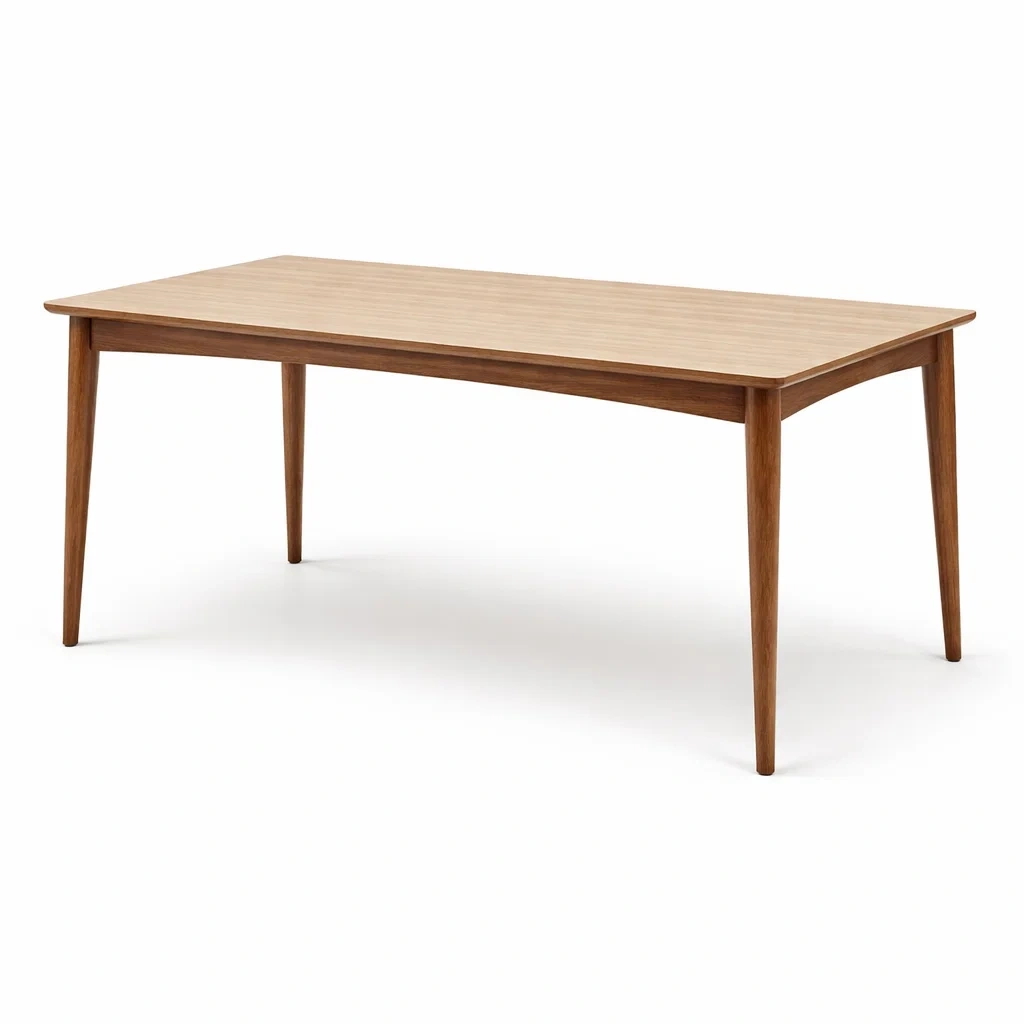 Table à manger rectangulaire fabriquée en bois de chêne massif avec finitions naturelles.