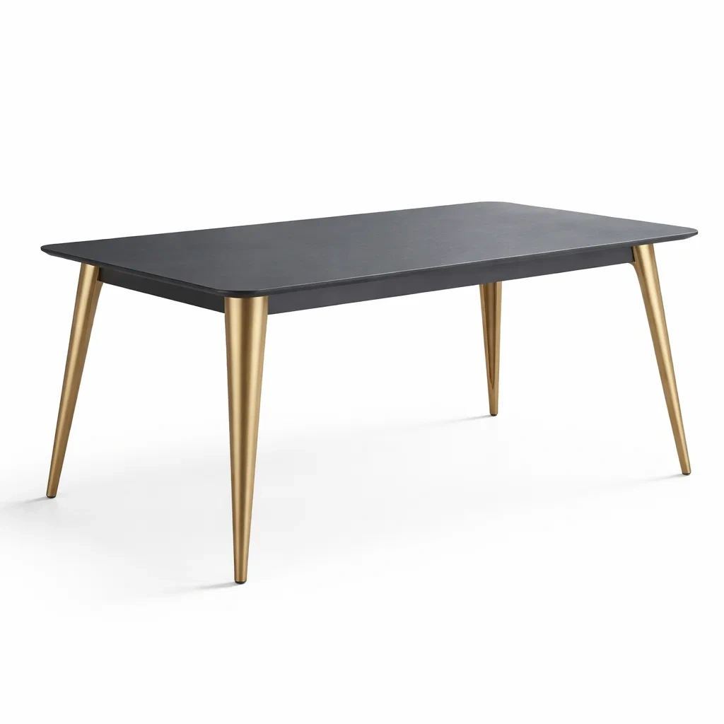Table de salle à manger rectangulaire en MDF avec pieds métalliques dorés