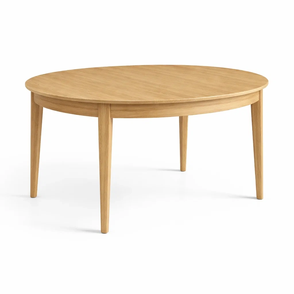 Table en chêne massif avec une finition vernis transparent.
